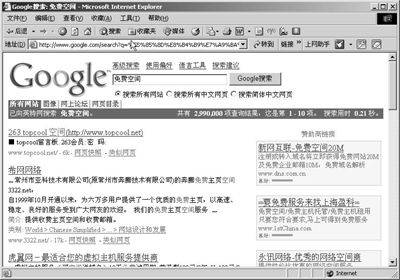 至于免费空间的寻找,教你一个办法。使用Google等搜索引擎,关键字为“免费空间”或“免费主页空间”,最好能在搜索的时候加一点限制,例如只搜索最近3个月相关内容,以保证找到的空间具有比较强的有效性。呵呵,看看结果吧(图1),然后找个合适的去申请!