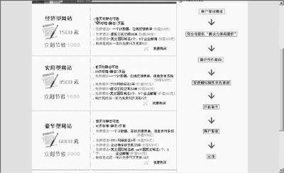 简单来说就像《大腕》里说的,什么也别管只管弄好的上去。买了服务(这个时候,你会体会到买的不是主机而是服务)后,什么域名、网络实名、主机空间、页面调查系统、信息发布系统全部是“送”,还送一定数量页面的免费制作和维护,连网页制作都可以让专业人士帮你代劳,还有专业的技术人员24小时监管,超大容量、超大带宽,运行软件的任意设置等等,听了流口水,不过看看便宜的一年也要六七千大洋……笔者只有忍了(图3)。
