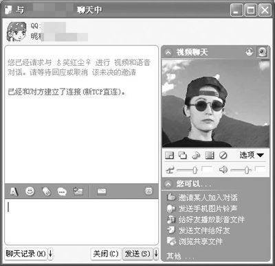 当你在系统中安装并设置好Softcam程序之后,再启动QQ、MSN等即时通讯工具(此处以QQ为例),你聊天软件中的联系人将看到在好友名单中你的昵称旁显示了一个摄像头标志(图5)。