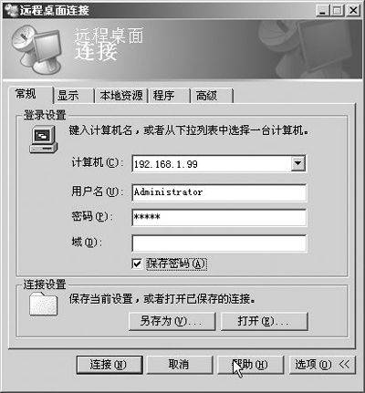 现在我们就可以在远程桌面连接程序中,单击“连接”按钮,登录到服务器进行管理了(图3)。
