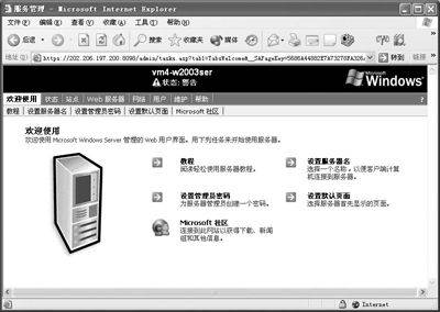 远程管理(HTML)主要用于通过Internet远程管理服务器的时候,而且是有限的管理,它不像终端服务那样功能全面,但对于日常的维护来说,已经足够了。并且,因为采用安全连接,网络管理员不用担心在管理过程中被窃听。