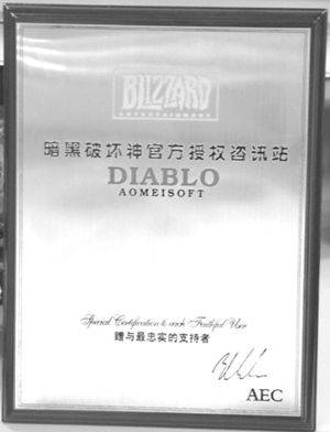 令记者震惊的是一条发自奥美电子官方的新闻──“奥美电子官方授权咨讯站授权铜牌”,在奖励“为中国玩家做出巨大贡献的个人站点”中,赫然列着:《暗黑破坏神》──www.i***.net(暗黑破坏神中文站)。这样一个在玩家当中颇负盛名,备受官方认可的个人站点,竟是明目张胆践踏游戏知识产权者之一,这实在是个天大的讽刺。