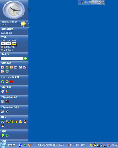 Desktop Sidebar是一个非常酷的软件,用它可以做出比Longhorn更强大的侧边栏,对于喜欢Longhorn界面的人,一定不要错过。