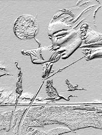 3.调节完后点“确定”,现在浮雕效果虽然出来了,但整个色彩偏暗。按照前面讲述对图片色彩调整的方法,将浮雕的对比度和亮度调整一下效果更好。最后结果如图6,怎么样?把自己的照片也做一个试试看吧,不过选择照片的时候要注意选择层次比较明显,背景单一的照片,做出来的效果更好。