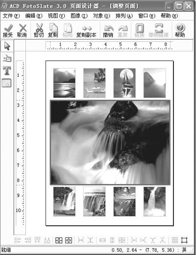 ACDSee6.0在打印设置方面有了很大的改进,在2003年第40期的C4版我们作了详细的介绍。但与ACDSee6.0集成的另外一个软件ACD FotoSlate3.0(是一个电子相册软件,它能让你轻松创造、储存,还可以从丰富的样板中,打印出专业的照片,你也可以通过它来设计自己的相册),对多图打印和节省纸张设置十分方便。