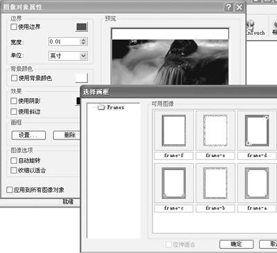 3.如果你还想对图片的背景和艺术效果进行处理。在右边的模板框里选择需要处理的图片,点鼠标右键,选择“图像对象属性”。这里你可对图像大小,背景颜色以及边框进行设置(图9)。