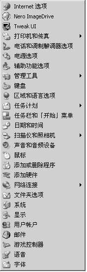 虽然进入控制面板方便了,但是要想打开控制面板中的某个项目,我们还得先打开控制面板窗口,再双击相应的项目,能不能把所有的项目以子菜单的形式显示呢?可以的。以Windows XP为例,步骤如下:
