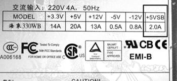 首先,实现网络唤醒开机功能必须硬件支持才行,目前大部分主板和ATX电源都是支持网络唤醒的。不过需要注意,ATX电源中的+5VSB的输出电流至少应在720mA以上(图2)。其次要网卡支持。我们知道,普通主板通过PCI网卡来实现网络唤醒开机时,必须在BIOS设置中把“Wake On LAN”或者“Resume by LAN”选项设置为“Enable”打开。板载网卡也支持网络唤醒功能的,不过我们除了在BIOS设置中把“PowerOn By OnBoard LAN”设置为“Enable”这外,同时还需要将“PowerOn By PCI Card”关闭,这样就可以通过板载网卡实现网络唤醒开机了。网络唤醒在Windows中的详细设置步骤大家去查阅这方面的资料,在此笔者就不详细介绍了!