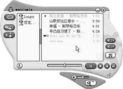 提示:共享歌曲的格式现只支持WMA、MP3、WAV和AU。另外还可单击“musicmix”窗口左上端的“Change Background Image”按钮,选择一个图片文件对该窗口皮肤进行更换。