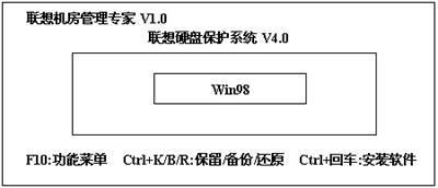 在此界面下,有三种选择:按“F10”可进入设置菜单;按“Ctrl+Enter”可进入软件安装模式;按“Ctrl+K/B/R”,则可进行本机分区的保留/备份/还原。因为要从光驱引导,并安装Win98 SE系统,故要设置BIOS从光驱引导。在如图3界面下按下“Reset”键重新启动机器,设好BIOS后,当再次出现图3界面时,按“Ctrl+Enter”进入,同时插入Win98 SE系统盘安装操作系统及常用软件。