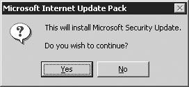 该病毒利用了IE的iframe漏洞,利用电子邮件、点对点工具及聊天的文件共享功能进行传播。它多以退信或微软公司发布的补丁升级程序的形式来迷惑用户,并在不打开附件的情况下自动进入系统,进行感染。病毒附件名以P、Q、U、I开头,它会显示一个下载升级服务包的窗口(如图所示)。无论用户选择“是”或“否”,病毒都会将它植入系统内。为了麻痹用户,它甚至会显示不同的下载窗口和出错窗口。