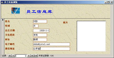 在信息资源管理中,如果通过窗体对数据库中的信息浏览会非常方便。但是在Access中用向导定制的界面并不一定符合我们的要求,这时可以根据自己的需要进行自行定制,从而方便工作的需要。我们在前文介绍的员工数据库基础上来完成此操作。在员工库建立以后,如果需要对员工的信息进行浏览,可以通过制作一个信息浏览窗口的方法来解决。