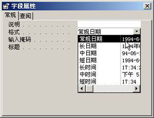 用鼠标右键单击“订货日期”字段,并从弹出的快捷菜单中选择“属性”命令,打开“字段属性”对话框,单击选择“常规”选项卡,并从“格式”下拉列表中选择订货日期的显示方式为“常规日期”,完成后关闭对话框,并保存修改的查询,如图2所示。