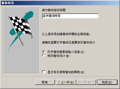 在打开的样式选取对话框中,单击选择“国际”样式,并单击“下一步”按钮,并在打开的对话框中命名窗体的名称为“条件查询向导”,并单击“完成”按钮结束,如图6所示。