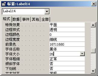 用鼠标右键单击标签,并从弹出的菜单中选择“属性”命令,打开“属性”对话框。单击选择“格式”选项卡,设定标签字体为黑体、字号大小为26,然后设定“背景样式”为“透明”,如图9所示。