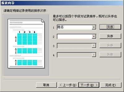 弹出“排序”对话框,在条件中选择排序字段,单击“下一步”(图4)。