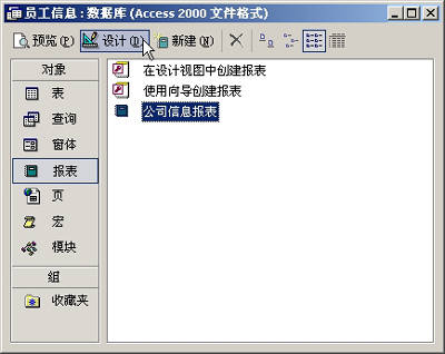 如果要进一步设计报表的样式,可以在数据库窗口中单击“表”,然后选择“公司信息报表”,并单击“设计”(图7)。