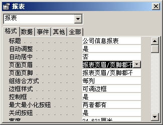 如果不想在报表的第一页打印页眉和页脚,可以在“设计”视图中用鼠标右键单击页面空白处,在弹出菜单中选择“属性”打开报表属性对话框。单击选择“格式”选项卡,将“页面页眉”或“页面页脚”属性设置为“报表页眉/页脚都不要”,然后关闭属性窗口即可(图8)。