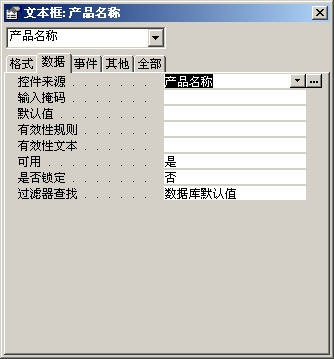 用鼠标右键单击文本框,从弹出的菜单中选择“属性”命令,打开属性对话框,在“数据”项中将“控件来源”设置为文本框与数据库相对应的字段名称(图7)。