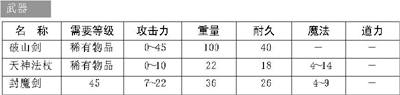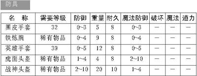 看看部分新加装备和稀有物品的属性资料,大家一起流口水吧。(见表格)