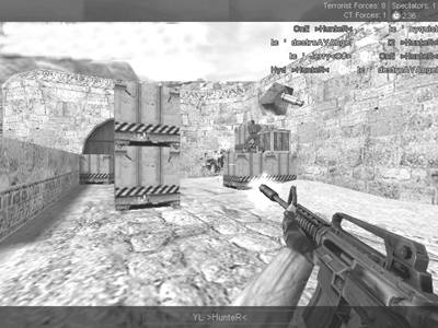 第十二局T选择了快打中门并迅速突破了B区,YL连杀两人(图2),双方在中门激战,各损失了3名队员,快速回防的nyquist进B区击毙了YL,形成了1V1的局面,ToTo快速转攻A区,在大道埋雷,结果niquist面对躲在坑下的ToTo,无法拆雷,被击毙。因为华硕显卡的3D性能非常好,即使对方战队狂扔烟雾弹,画面也没有丝毫停顿。