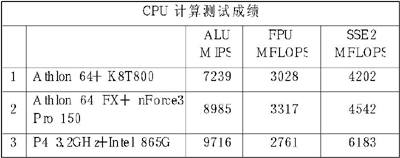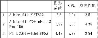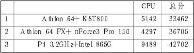 这个软件可以测试显卡、CPU及系统的总体性能,我们主要应该参考CPU和总体性能。三者的表现Athlon 64 FX最好,P4次之,Athlon 64排在最后。