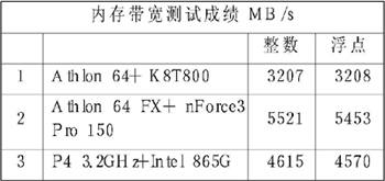 AMD 64位处理器的内存性能有了很大飞跃,几乎接近了单通道3.2GB/s和双通道64GB/s的理论峰值。这表明在处理器集成内存控制器跳过了以前的北桥,处理器直接访问内存,确实能够极大提高内存和CPU间的传输能力。