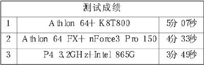 小结:参考这三个测试的结果,我们认为P4平台虽然支持双通道内存,但Athlon 64 3200+通过集成内存控制器,大幅提高了内存访问性能,使得二者的整体性能相差无几。而集成双通道的Athlon FX-51平台整体性能很可能会超过P4 3.2GHz平台。