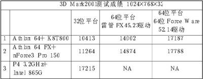 由于驱动程序的原因,Athlon 64在32位平台下表现欠佳,但在更新驱动后,Athlon 64的成绩有了很大提升,再次逼近P4平台。
