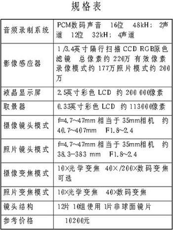 佳能MVX10i的尺寸只有52mm×118mm×102mm,重约450克,四四方方像一个小水壶(图1),原配备有一条带子,拎在手中非常方便。由于结合了摄像和摄影两种功能,所以用户在才接触这款机型的时候会觉得按钮繁多。其实当你用心操作一段时间后,你会发现这些功能键的设计和布置都相当合理,而且使用起来方便顺手(规格表见文后)。
