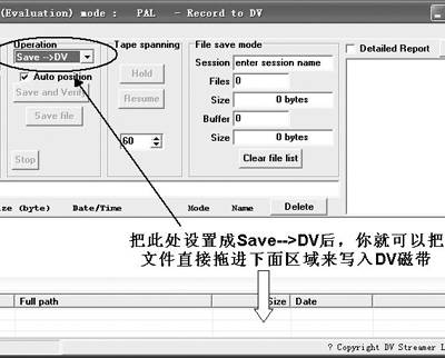 通过IEEE1394接口,我们连接好DV和电脑。试用中,我们可以将电脑中的任何文件拖进DV Streamer中,并储存到DV。就如同在刻录一张CD数据盘一样,储存过程异常简单。