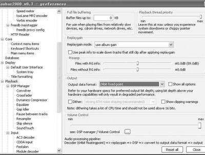 Set associations是设置音频文件关联的选项,建议在下拉列表中选择All supported formats以支持所有音频文件类型,因为一些新格式文件只有Foobar默认支持,而原来的MP3等格式用Foobar回放也是特别优秀。
