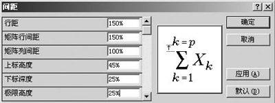 提示:①如果文档中只需要一个“求和”符号,可以这样实现:进入公式编辑状态,选中一种“求和”样式,不需要任何内容,直接退出编辑状态就行了。②在公式编辑状态中,执行“格式间距”命令,打开“间距”对话框(图2),可以对公式的内部元素间的微小间距进行修改。