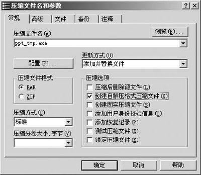10.单击“确定”关闭“高级自解压选项”对话框,返回“压缩文件名和参数”对话框。