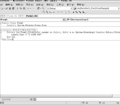 Label1.Text = "I LOVE YOU" ’在标签控件中显示文字,此处的“I LOVE YOU”可以替换成任何文字