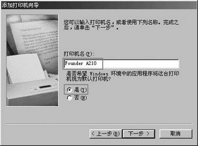单击“下一步”按钮,可以选择不同的网络打印机名(本例是Founder A210),并将此网络打印机设置为默认打印机(图3)。