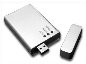 E网行HZE-368(图5)采用GPRS CLASS 10模块,支持EGSM900/DCS1800双频段网络,兼容GSM Phase2/2+,具有电话、传真、电话簿管理以及短信息收发功能;它采用USB 1.0/1.1标准接口(可选PCMCIA接口),可热插拔,无须外接电源;它所拥有的内置天线(USB接口产品)实现了真正的无线上网。同时,它还支持机卡分离,长时间上网不掉线。该产品还独具匠心地内置了64MB/128MB闪存(可选配,用户在操作系统中可以不使用驱动光盘,而直接在闪存中进行“E网行”相关程序的安装)。它对主板的供电要求极低,即使USB口供电不足也不会影响正常上网(克服了市面上同类产品经常因USB口供电不足而掉线的缺点)。该产品参考价格为1700元。