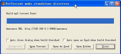 该工具用来制作“.torrent”文件,BT服务器就是通过此文件来实现资源共享的。