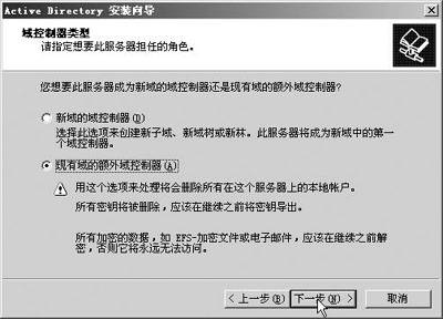 一旦域控制器出现故障将会造成用户登录缓慢。在这种情况下,我们就需要重新安装域控制器了,这也是排除域控制器故障最基本的方法(注意:只有在保存好用户数据及信息的前提下,才能重新安装)。