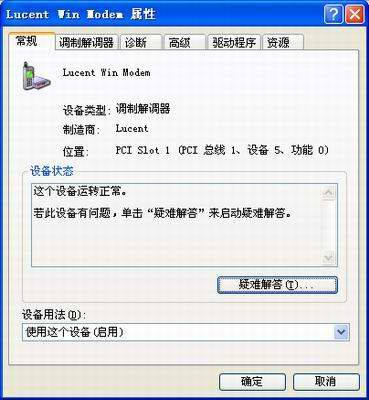 在“设备管理器”界面,找到Modem设备,然后点击该硬件设备前的“+”号,这时我们看到的是该Modem的名称,然后在该设备名称上单击右键选择“属性”命令。随后弹出一个“属性”对话框(图2),在此你可以根据计算机硬件的配置获取相关硬件的驱动程序的信息以及对该设备的运行状态(如更新、禁用、停用或启用)进行相关的操作。