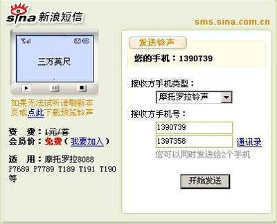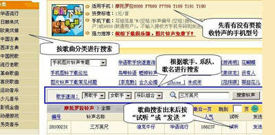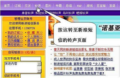 其他的网站的铃声与图片的下载方式和新浪网差不多,但一定要搞清楚欲接收铃声与图片的手机型号,再对号入座进行操作,否则你所做的一切都可能是白费力气。