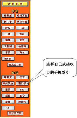 ②不同的机型使用不同的铃声,所以在新的页面中首先要选择自己的手机型号及铃声的类型(单音还是和弦)。