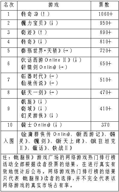 网络游戏热门排行榜10月份结果揭晓