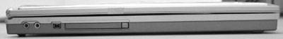 左侧分布着麦克风、耳机、IEEE1394和PCMCIA接口。现在越来越多的笔记本电脑开始提供IEEE1394接口,方便导入DV视频。PCMCIA插槽为笔记本电脑提供了一种标准的扩充手段,比如PCMCIA网卡、硬盘卡甚至GPRS连接卡等等。不过随着USB外设的增多,PCMCIA插槽用得越来越少了。