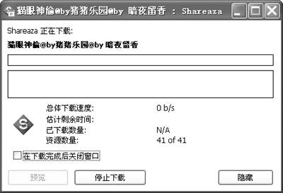 安装Shareaza程序后,我们就不再需要登录到BT服务器,只要在网页中单击torrent文件的链接地址,或者直接将下载回来的torrent文件拖放到Shareaza的主窗口中,此时就会弹出图28所示的对话框,点击“立即下载”按钮,Shareaza会自动从BT服务器查找可用的下载资源,这里可能需要一定的时间,请耐心等待片刻。