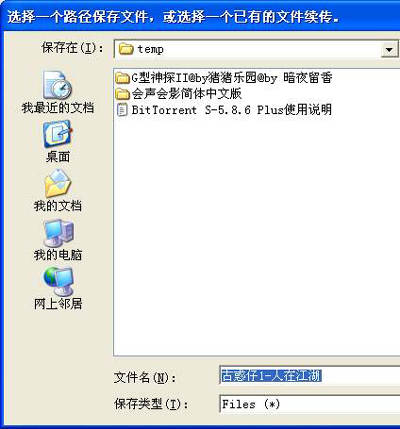 提示:如果你临时有些其他事情需要暂时中断下载也不要紧,因为BT支持断点续传,只要再次双击*.torrent文件,选择上一次下载文件时所保存的路径就可以接着下载了。