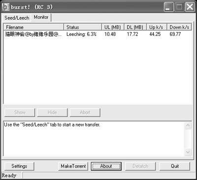 下面,笔者以一个实际的操作例子来向朋友们说明如何使用BitTorrent下载文件。