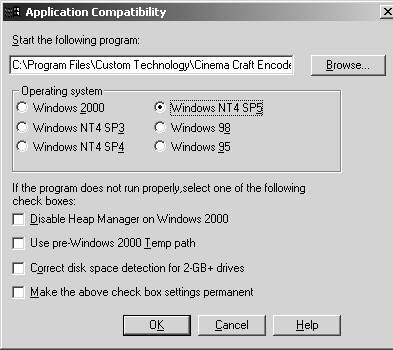 Disable Heap Manager on Windows 2000:防止程序与Windows 2000的内存管理模式发生冲突。