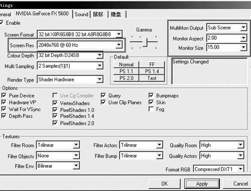 介绍完各个抗锯齿的级别和特点后,我们的设置方法选择也清楚了:GeForce FX5600及其以上显卡可以根据游戏不同选择2×Q模式、4×9 tap模式、4×S、6×S的方式采样。而GeForce FX5200级的最多用个2×级抗锯齿就足够了。最下方的“各向异性过滤”分为2×、4×、8×三个级别。GeForce FX5200以上可以根据情况自由选用。而GeForce FX5200使用2×应该是比较好的选择。