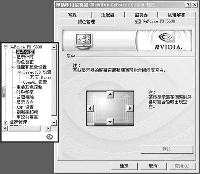 “显示计时功能”初看让人摸不着头脑。其实就是选择显示器的显示计时标准就有“Windows自动选择”、“通用计时标准”(这也是大多数新显示器使用的标准)、“离散显示器计时”(极少数显示器仍在使用的标准)、“协同视频计时标准”(2003年3月才成为VESA标准,也是这版驱动最新添加的,比较适合高分辨率的要求)和“固定纵横比计时”选项。最后一种计时方式可以强制图像使用自己的纵横比而不必理会显示器的纵横比。比如说我们常用的17英寸显示器是4:3的纵横比,而DVD画面(就是电影画面)是16:9。不过这个功能常在低档显示器上造成超出刷新率的问题。这么多的计时标准,如果不是对自己的显示器十分了解,建议还是选择“Windows自动选择”。最后下方有一个52.16版驱动新增的“启用用于低分辨率的双重扫描”选项。它可以极大提高低分辨率的图像的质量,比如现在正流行的各种街机模拟器。但是它也要求显示器以双倍刷新率运行,即要求高带宽显示器支持。40系列驱动明显就少了这两个选项,20系列就更不用提了。